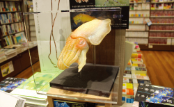 『世界で一番美しいイカとタコの図鑑』と一緒に展示された超リアルなイカ模型。出版社に交渉して作ってもらったとのこと。