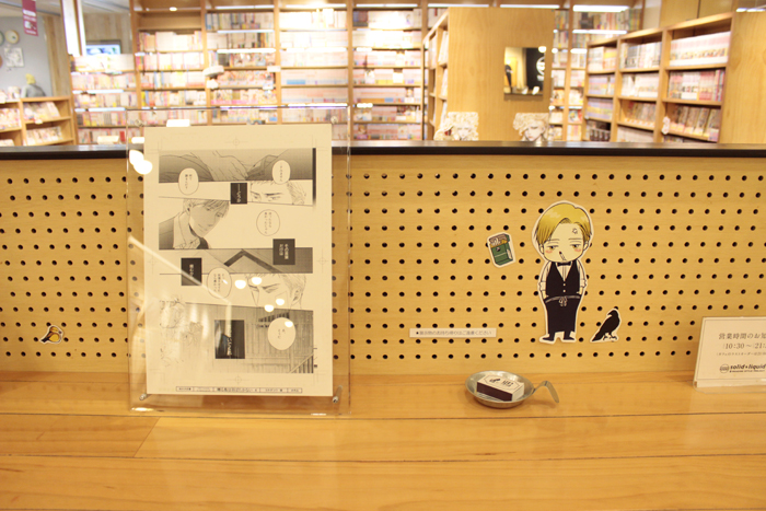 【Gallery Cafe】週毎にコラボ作家を変えて展開。等身大パネルやイラスト・原画などを展示。メニューは自社で考案している。 |